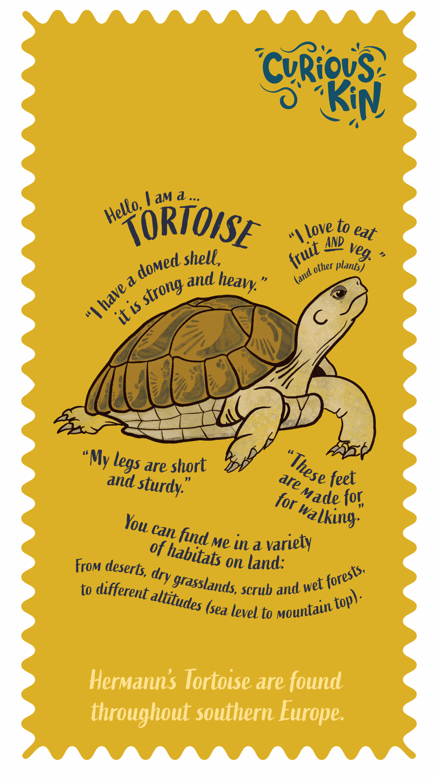 Illustration of Hermann’s Tortoise – found through out southern Europe.